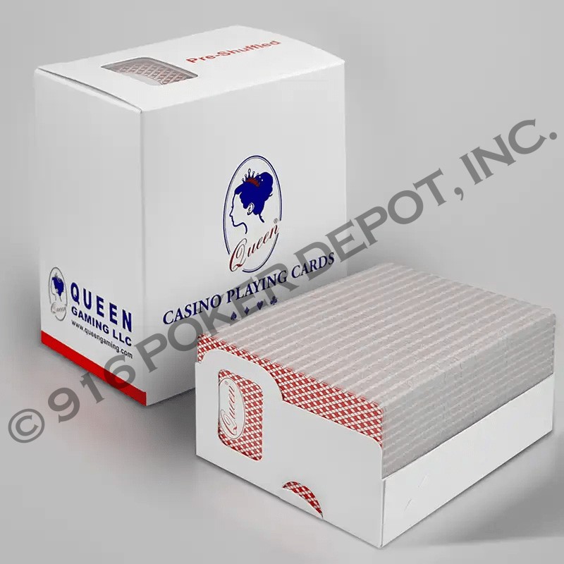 - The QUEEN casino no peek faces paper playing cards is easy to read and designed for casino card games. QUEEN casino grade poker playing cards have a flat matte finish. Crafted in accordance with strict regulations defined by the Nevada Gaming Control Board.