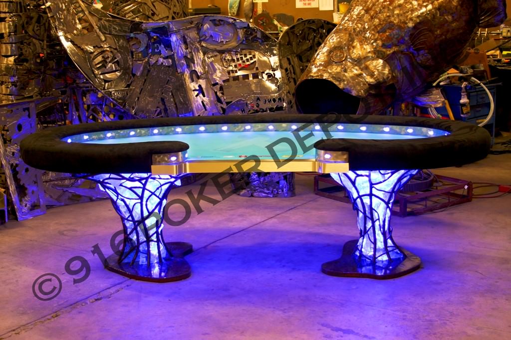 Looking for a ultra high end custom poker table for your poker room that is truly a one-of-a-kind? You are in the right place! We have custom built tables for some of the most popular celebrities, actors, producers and athletes around the globe. Let one of our hand crafted masterpieces compliment your Penthouse Suite, Exclusive VIP Gaming Room or Major Event today.