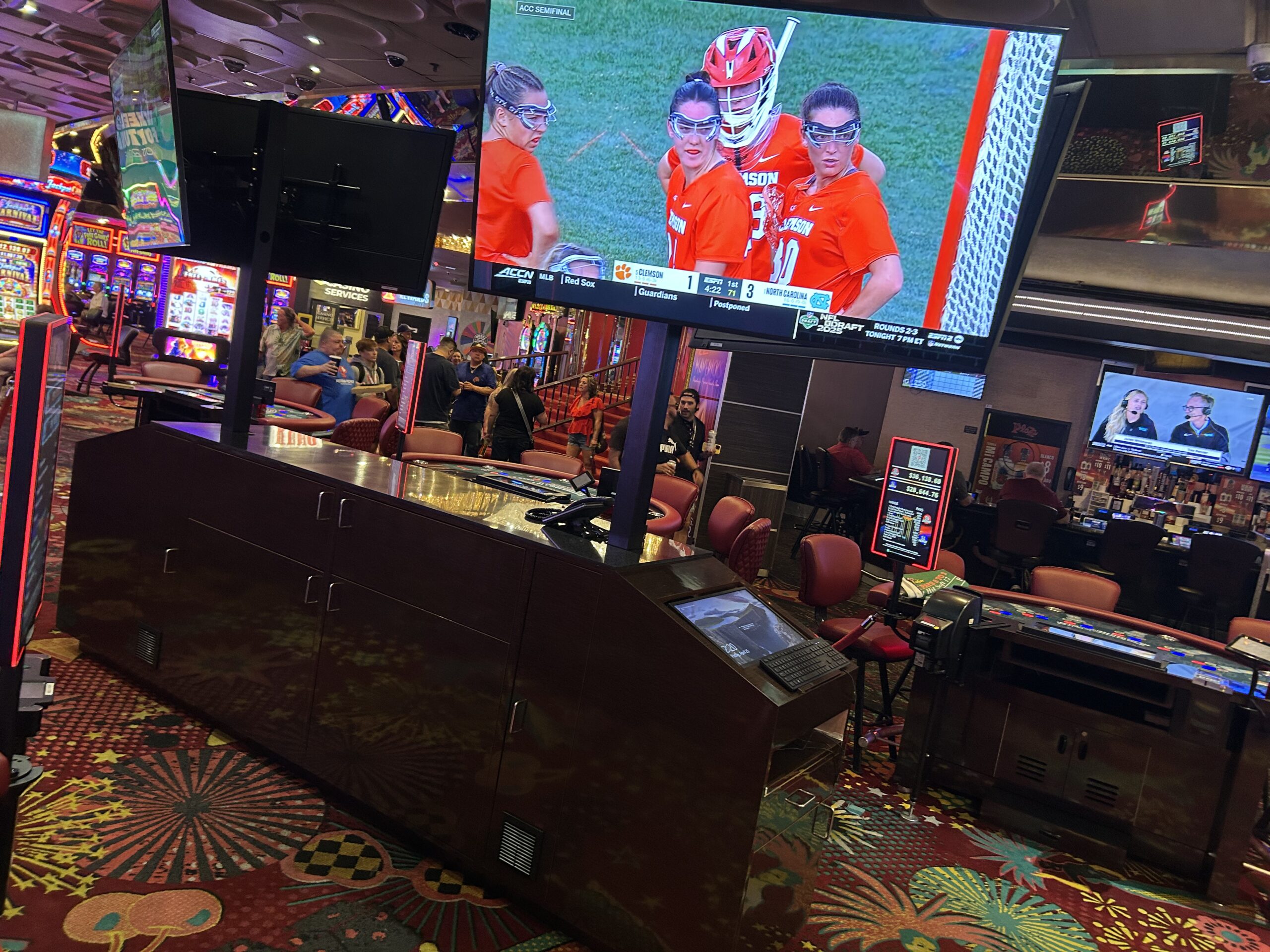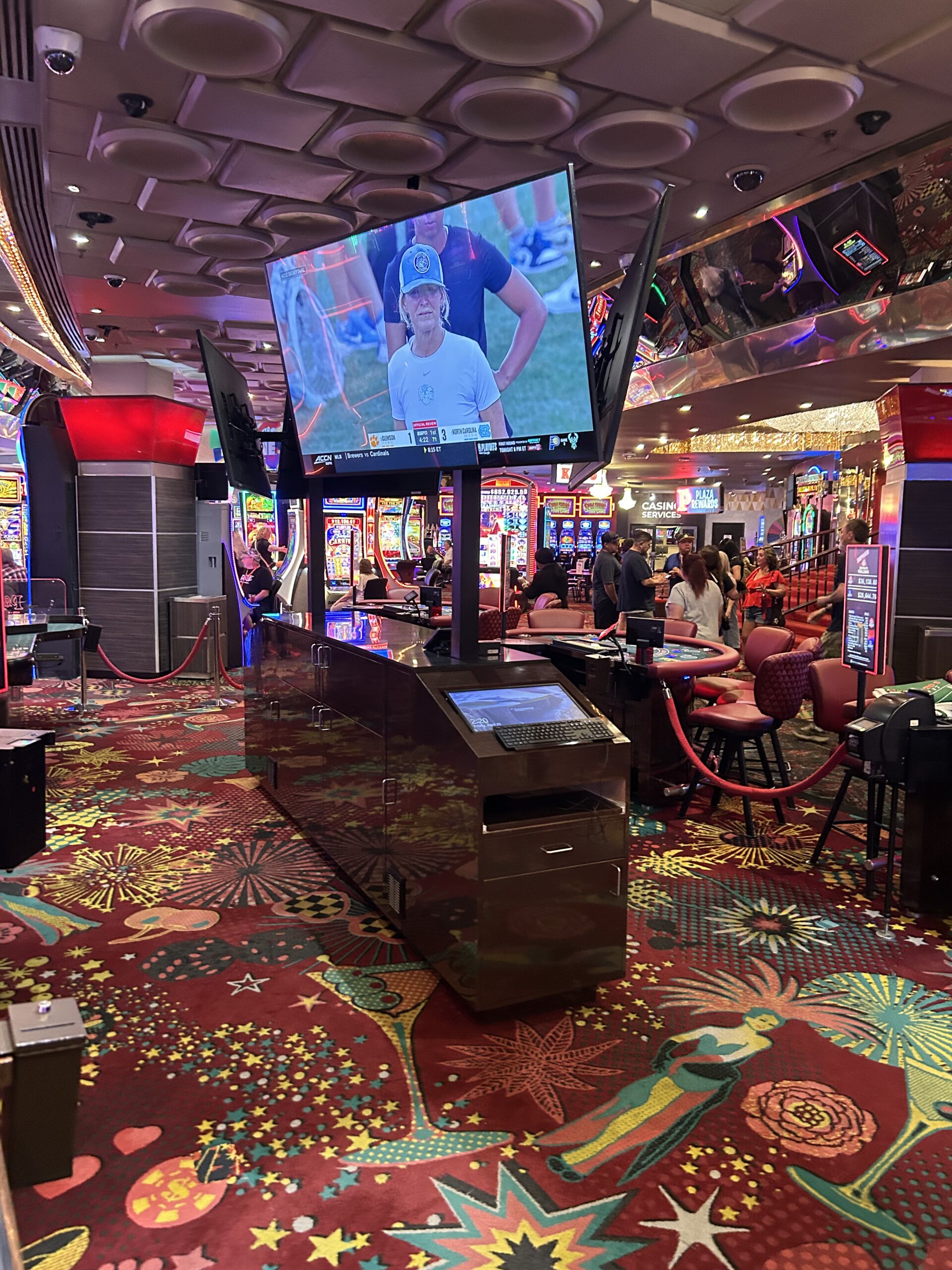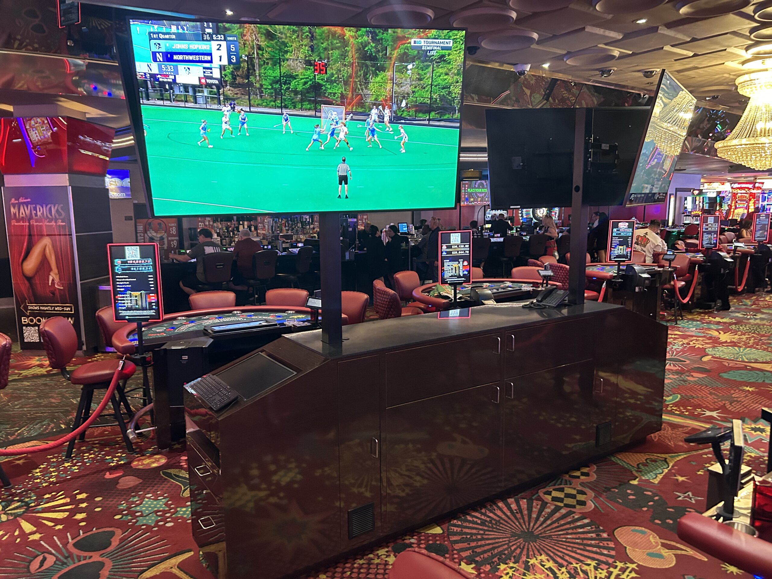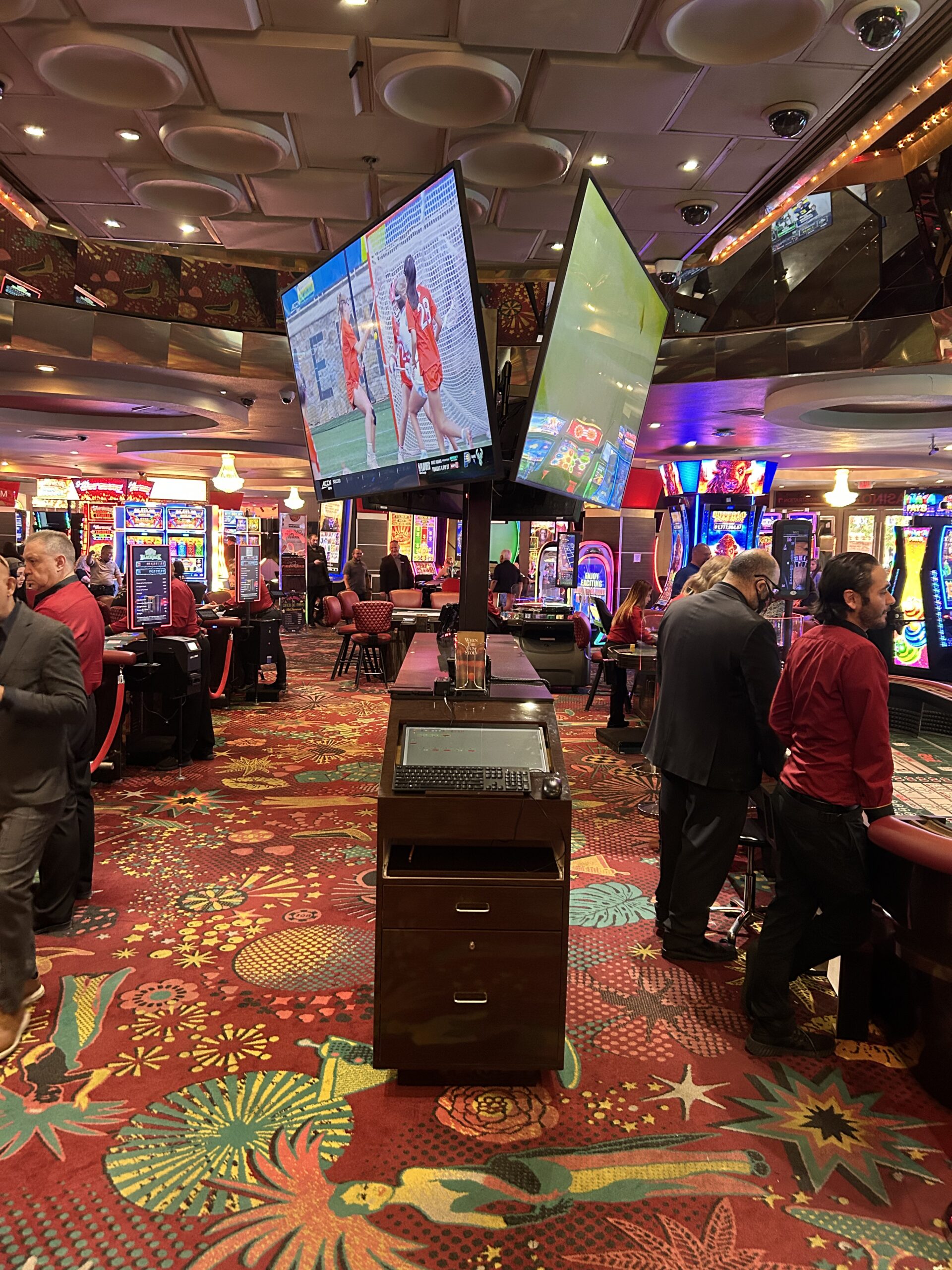 Dual-Station Casino Pit Podium with Integrated TV Mounts