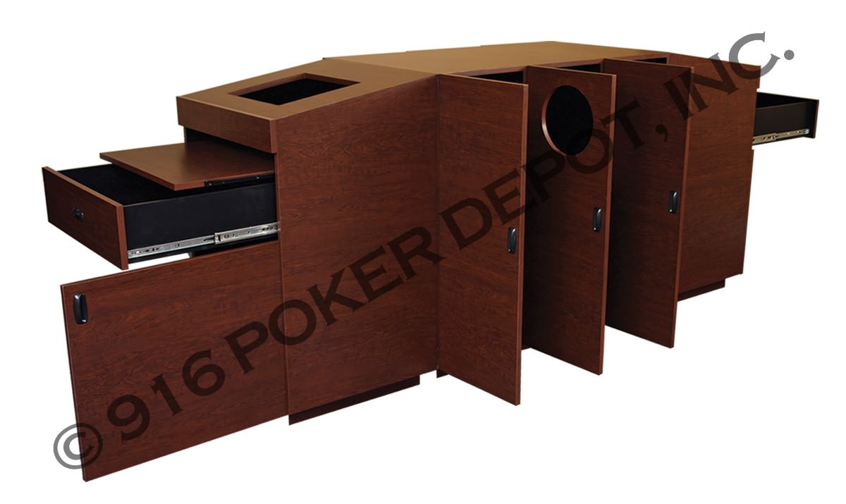 916 Poker Depot, Inc. is the industry leader in Casino Pit Podium Manufacturing. Each pit podium is custom designed by hand constructed by master craftsman with the highest quality materials available. We utilize state of the art CNC machinery and the best design software available in the industry today. All of our casino pit podiums are manufactured at our Folsom, CA U.S.A. facility. We use commercial grade premium domestic plywood so all our podiums are built to last. No particle board no MDF on any of our products, we use only premium products.